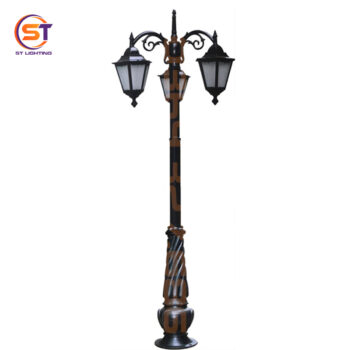 - Đèn được lắp vào trên đầu cột, với nhiều kiểu dáng và chất liệu khác nhau như kính, nhựa hoặc kim loại.