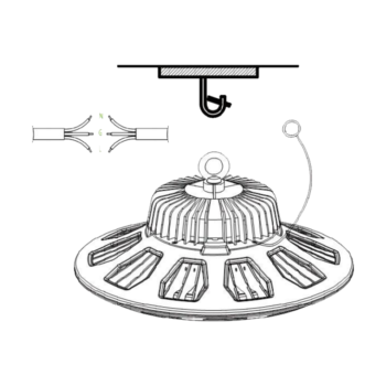 Đối với đèn nhà xưởng phương lắp thắng đứng, dùng xích treo hoặc dây treo.