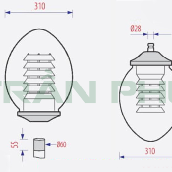 - Chụp đèn làm từ Nhựa PMMA có khả năng kháng tia UV, chịu va đập và nhiệt rất tốt, đảm bảo độ sáng, không ố vàng theo thời gian, hay bị han rỉ, mài mòn dưới các tác động của yếu tố thời tiết, khí hậu bên ngoài.
